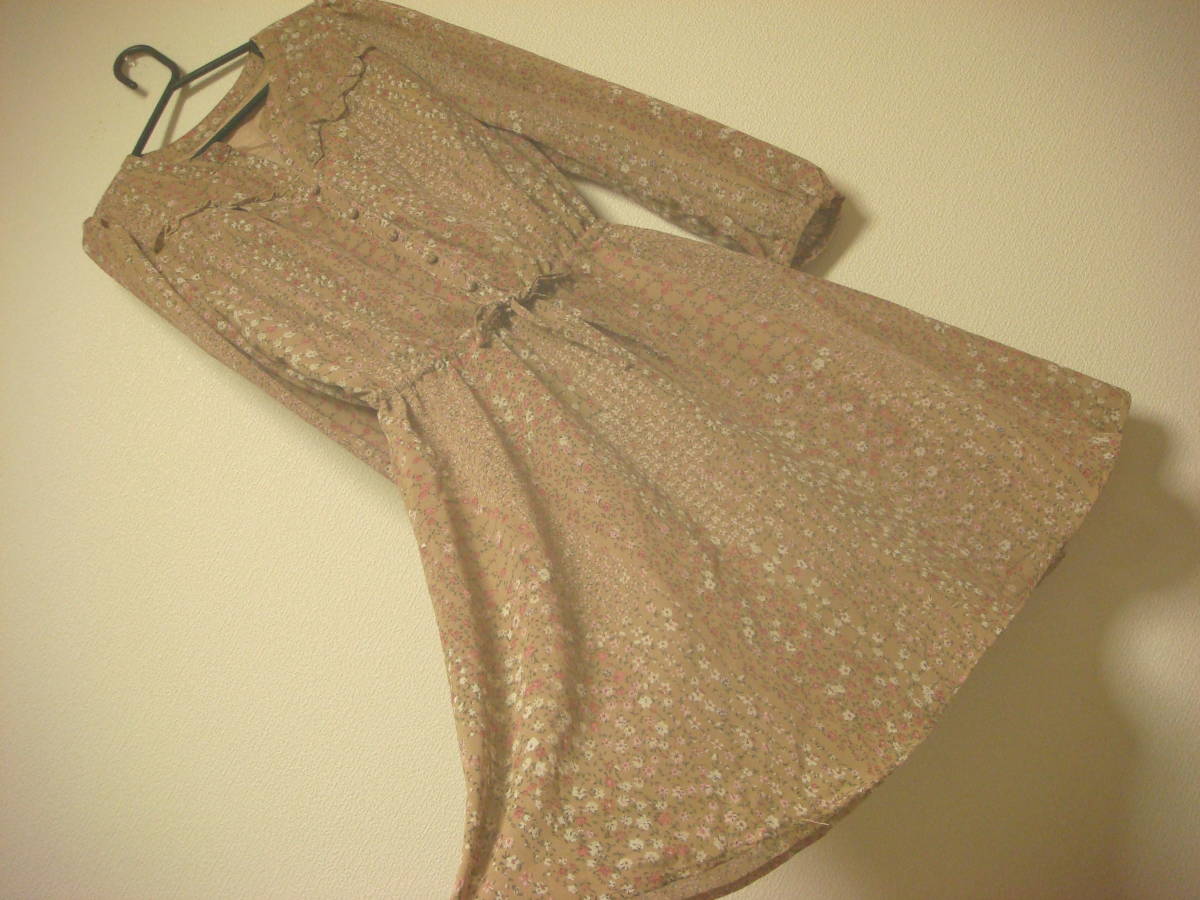 - アースミュージック&エコロジー 小花柄 ワンピース 赤ベージュ系 美品