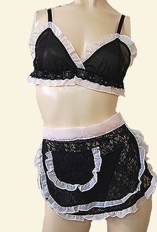 - 『送料無料』★メイド下着★ 三角ブラ・Tバック・エプロン 3点セット★黒/ブラック★Mサイズ★