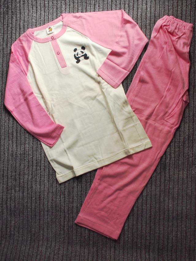 - レトロ子供服*パンダヘンリーネック長袖パジャマ11号?☆キッズ寝巻部屋着