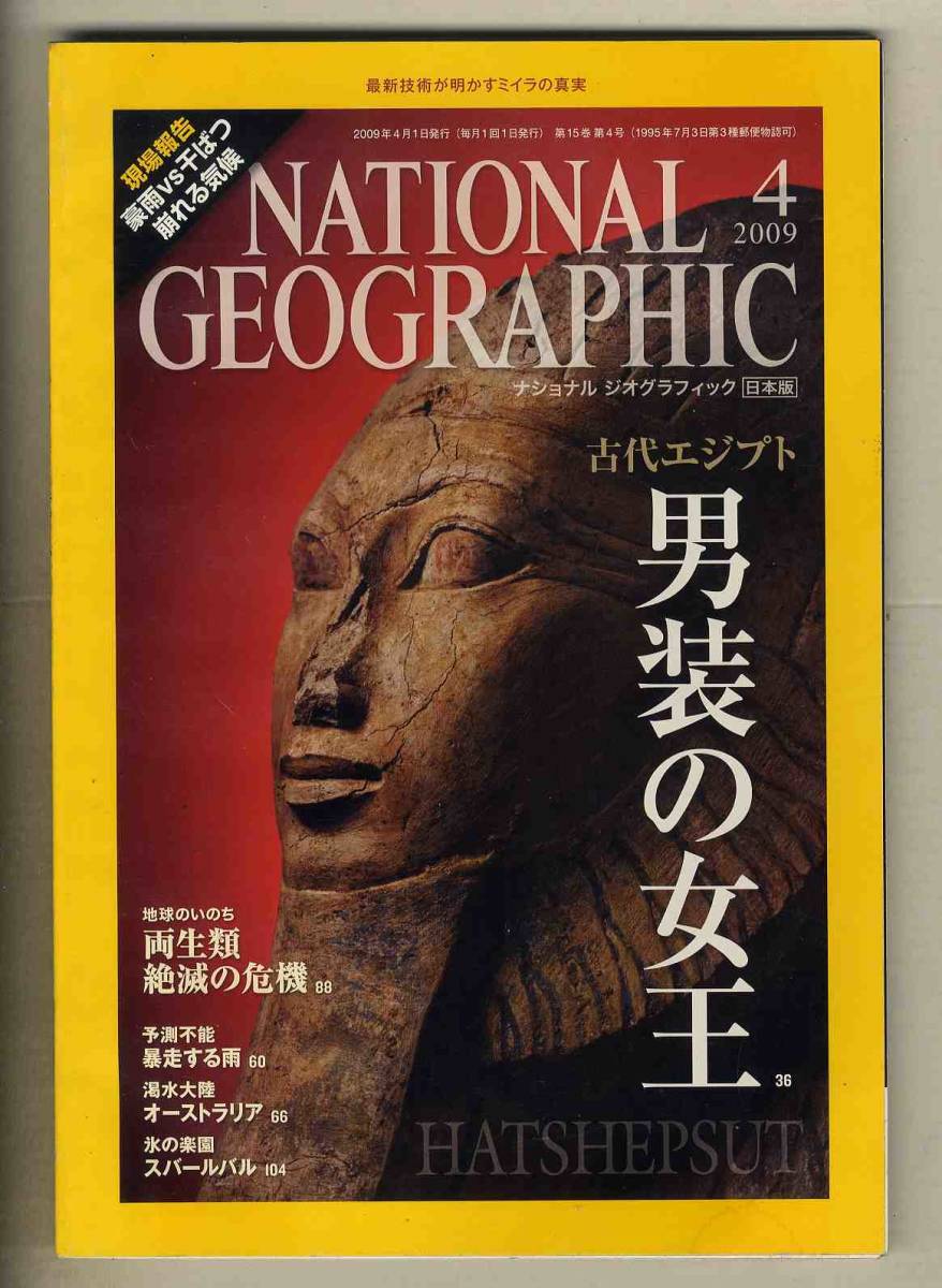 書名/記事: 09.4 ナショナルジオグラフィック日本版/古代エジプト 男装の女王、最新技術が明かすミイラの真実、両生類 絶滅の危機、予測不能 暴走する雨、渇水大陸 オーストラリア、氷の楽園 スバールバル、...