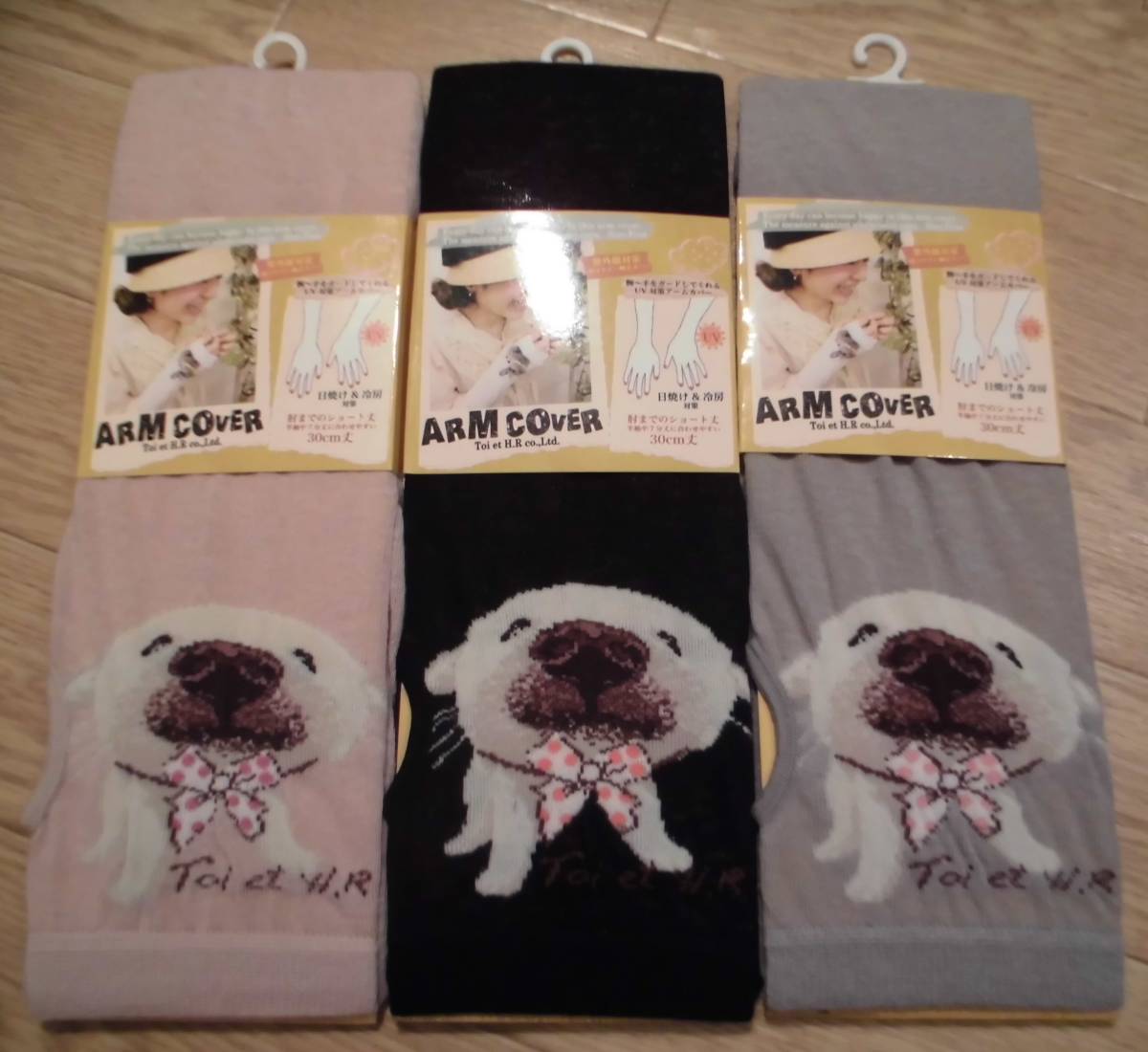 - 即決☆新品☆3色セットで!! 可愛い(^_-)-☆ アームカバー レディース UV 犬 イヌ柄 チワワ ピンク 黒 グレー