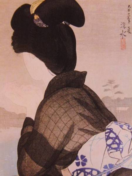 - 伊東深水、涼み、希少な額装用画集より、新品額装付、状態良好、送料込み