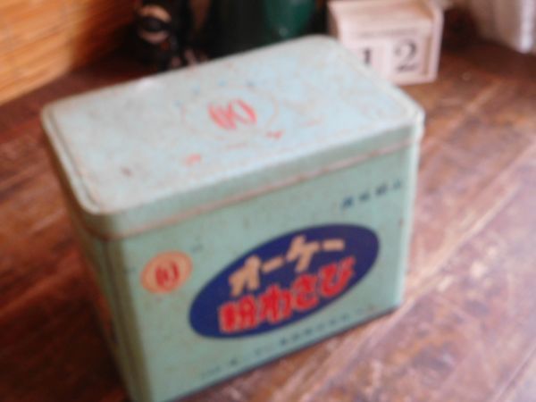 - 昭和レトロ オーケー粉わさび缶 静岡 22x13.5h17cm