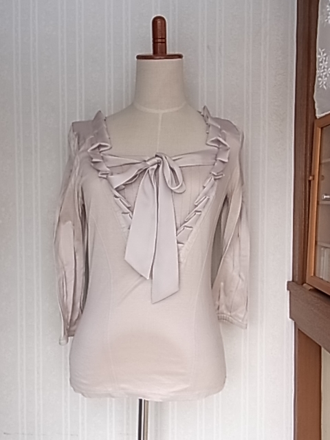 > BODY DRESSING Deluxe ボディドレッシングデラックス カットソー トップス サイズ38 光沢感のあるベージュカラー系 リボンが可愛い