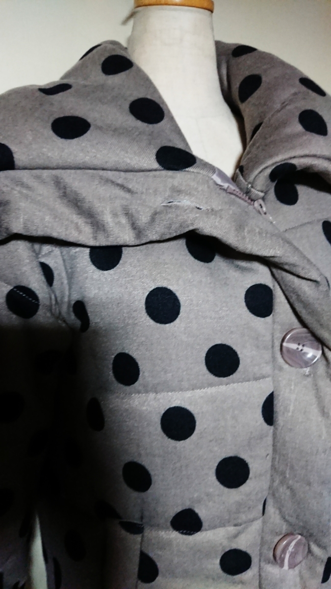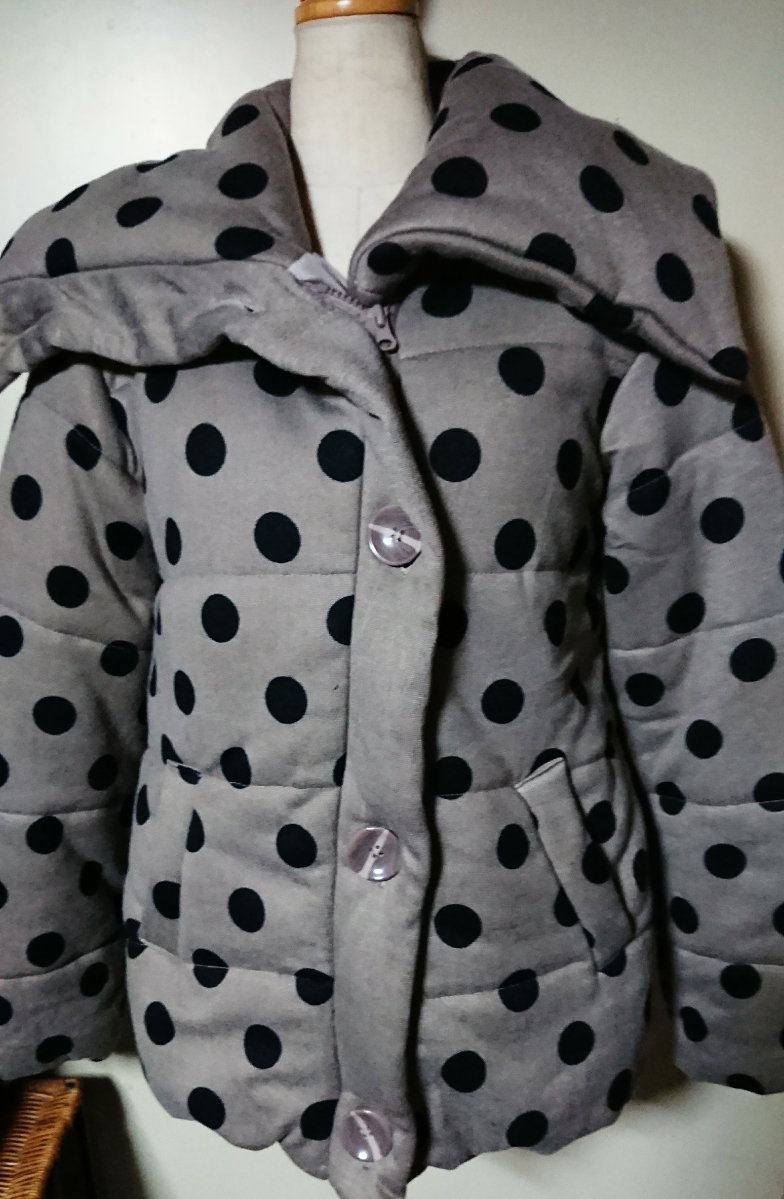 > L103◆タグ付き未使用品◆La Chou Chou ラシュシュ モカベージュ×ブラックドット もこもこあったかアウター ジャケット◆ Mサイズ■