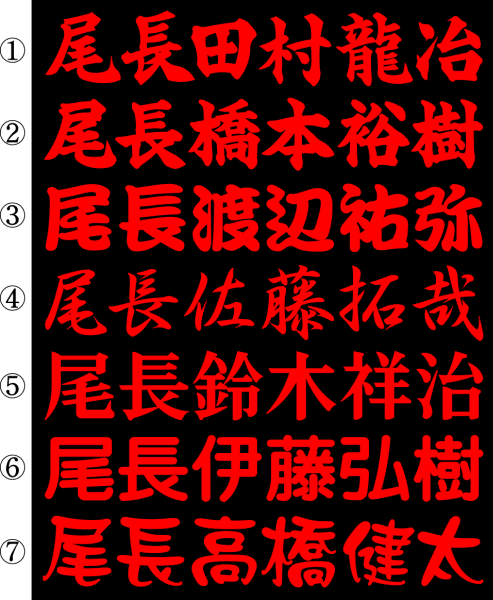 - 尾長 ネームステッカー 赤 30センチ 2枚組