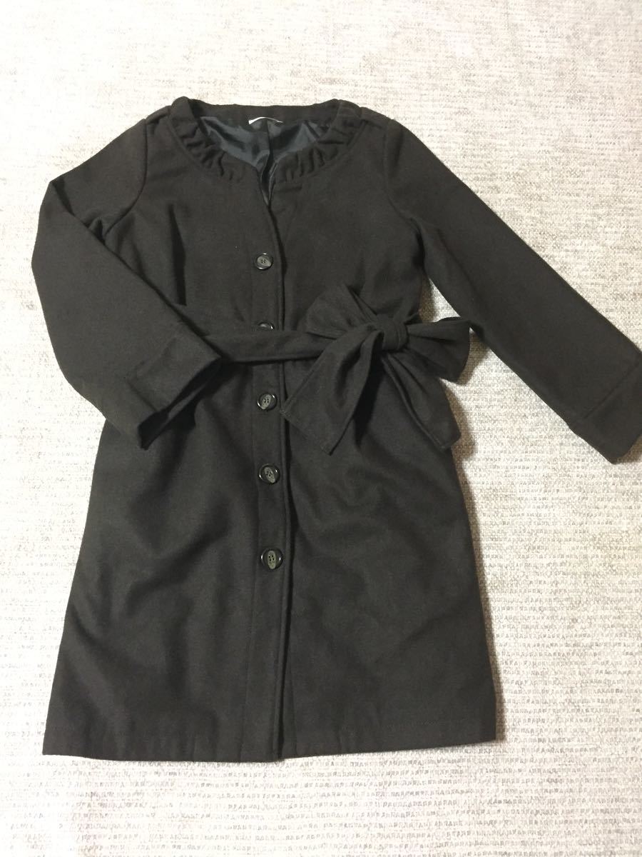 - 633.ファヴォリ☆冬コート☆ノーカラー 紐ベルト☆濃茶/ダークブラウン