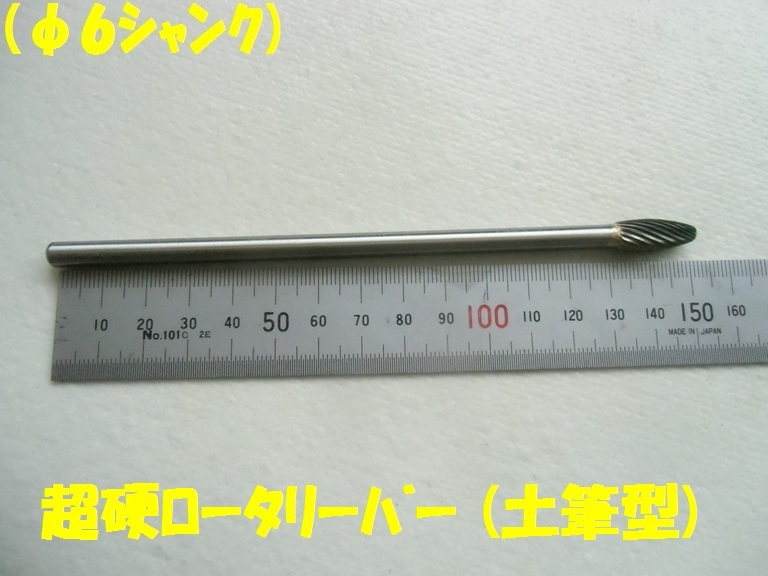 - 超硬ロータリーバー φ6シャンク 全長150mm 土筆タイプ