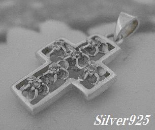 - シルバー925銀のハワイアン プルメリア クロス十字架ペンダント[ジルコニア付]シルバーアクセALL50%OFF