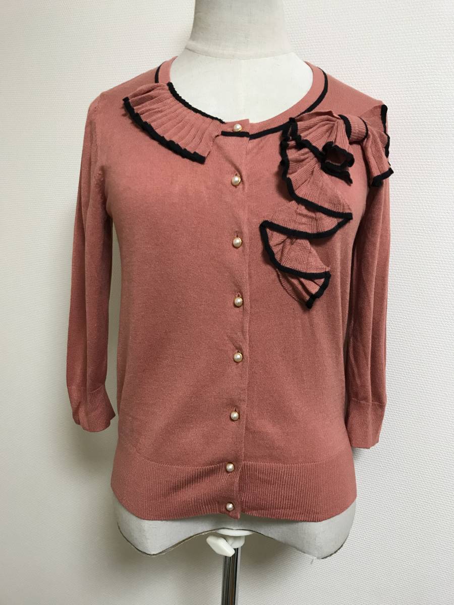 - 美品★レッセパッセパールフリルニットカーディガン★ピンクベージュM★5585