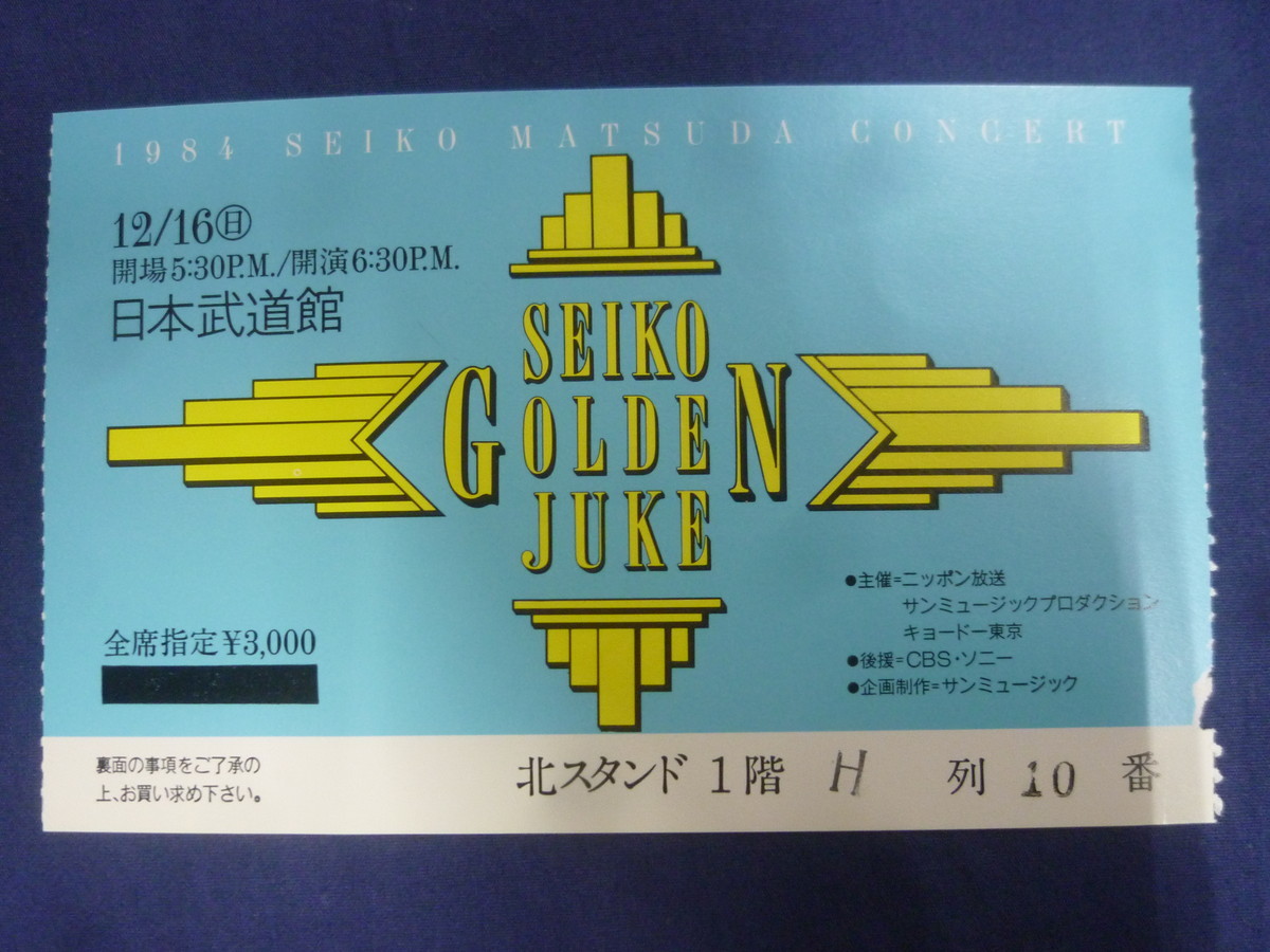 - 〇 松田聖子 チケット 半券 1984年コンサート SEIKO GOLDEN JUKE 12/16(日) 日本武道館 / 昭和59年