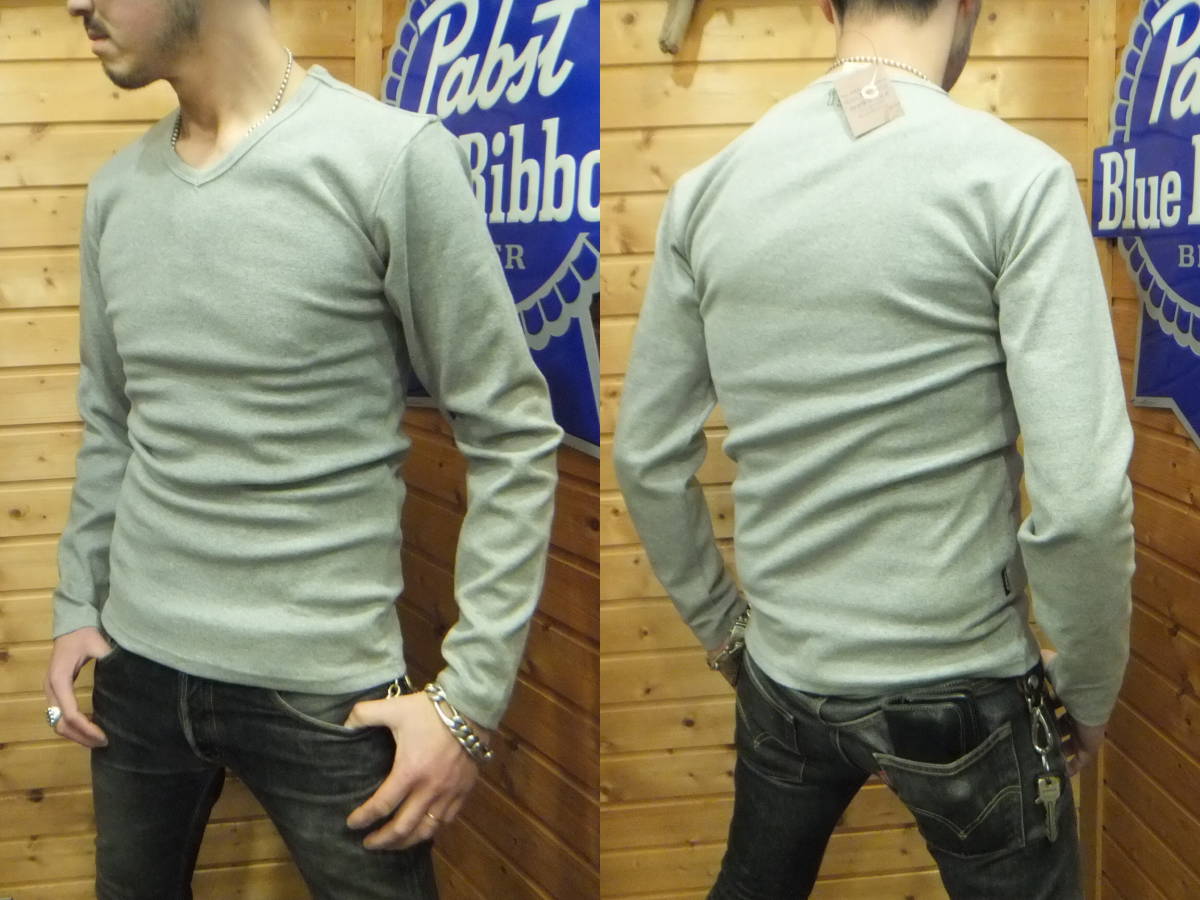 - アヴィレックス正規店 リブ素材 Vネック長袖Tシャツ[灰][L]新品 6153480-14 ※〒レターパック発送