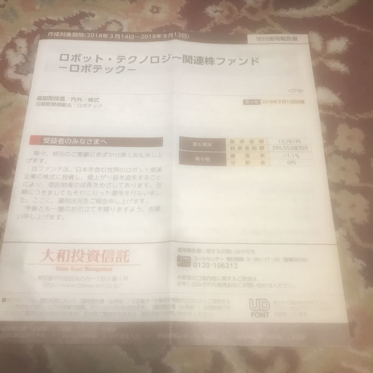 - ロボット・テクノロジー関連株ファンド(ロボテック)交付運用報告書(作成対象期間2018年3月14日~2018年9月13日)