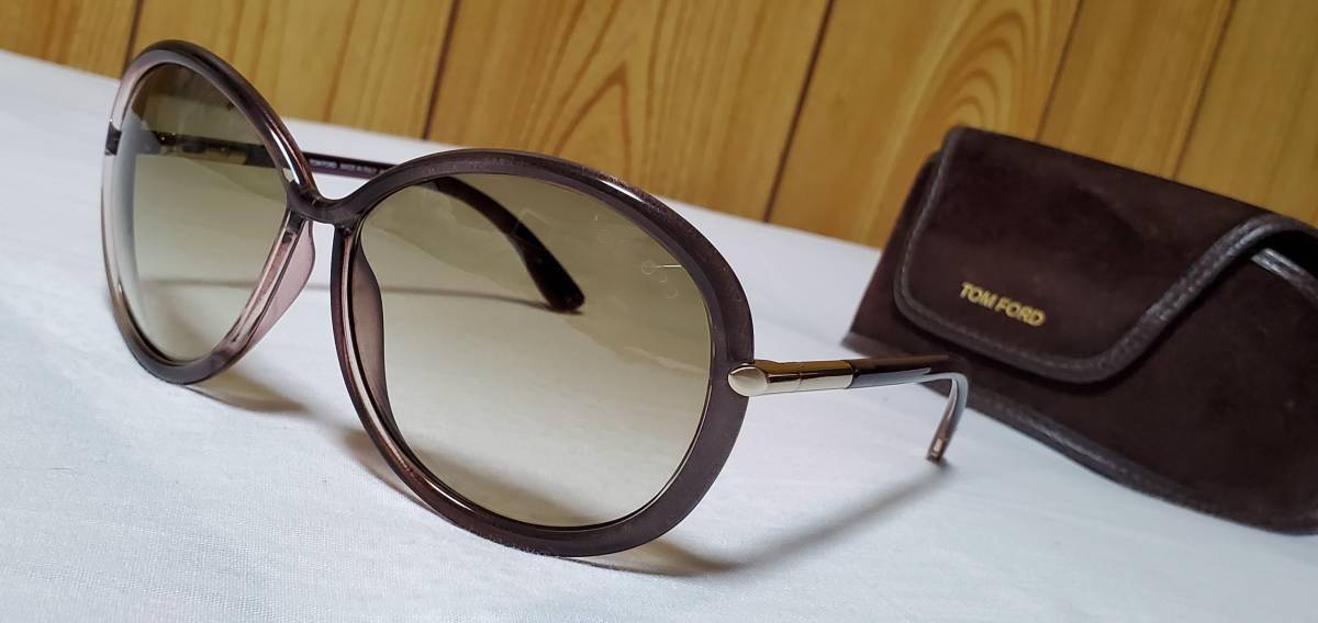 > 正規美 激レア! トムフォード TOM FORD クリアグラデーションフレーム バタフライサングラス パープル×茶 グラマラスカラー 男女兼用可〇