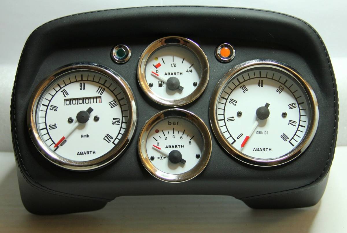 - 白、黒バージョン有り クラッシックフィアット500・595 アバルトダッシュボード、4連ホワイトメーター、総革張りFRPケース、新品