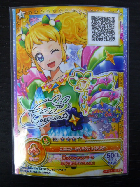 > ☆OPPR2-16 PR ユニコーンサジットリボン サイン付 マジカルトイ 三枝きい プレミアムレア アイカツオンパレード!☆パレード2弾☆