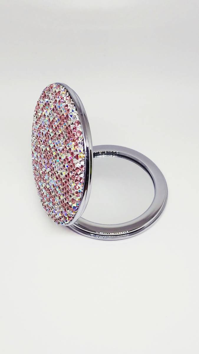 - 新品 未使用 ラインストーン 両面ミラー 片面拡大鏡 鏡 キラキラ コンパクト ミラー