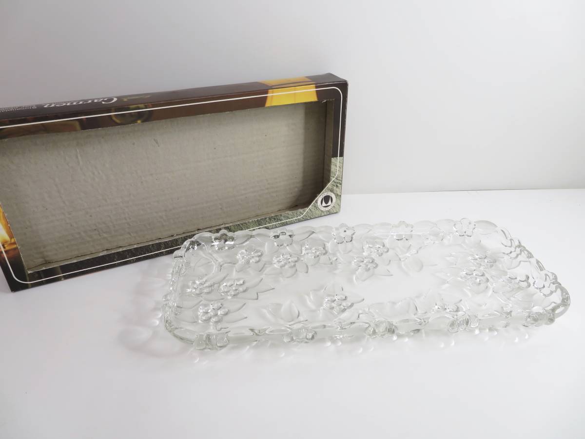 - 未使用品▲carmen カメイガラス 長皿 プレート 花模様 1枚 箱あり 管理2004 S-3