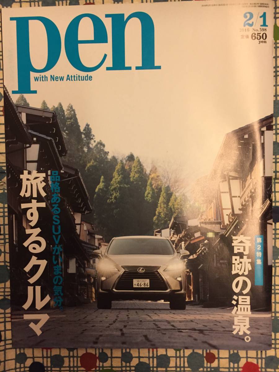 > pen with New Attitude 2016 No.398『品格あるSUVが今の気分。旅するクルマ』2016年2月1日発行 650円/LEXUSRANGEROVERJeepAudi