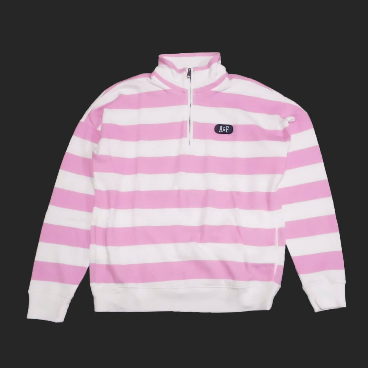 - ★SALE★Abercrombie & Fitch/アバクロ★ボーダースウェットハーフジップ (White/Pink/S)