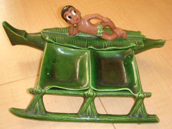 - 1950's ビンテージ ハワイアン カヌー 少年 置物 陶器 セラミック 筏 イカダ ロカビリー ネイティブ ロックンロール ミッドセンチュリー