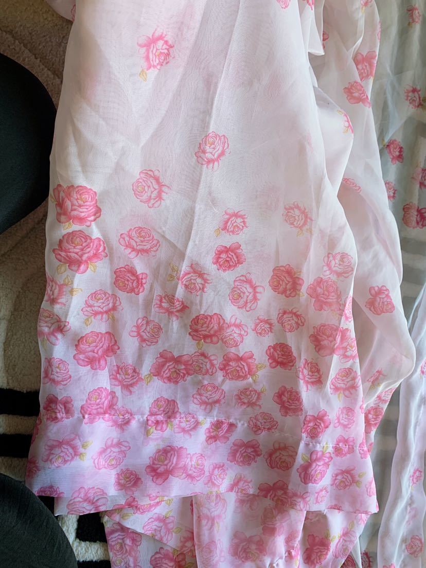 - ピンクバラ薔薇カーテンサイズ横幅約220cm縦幅約124cm美品