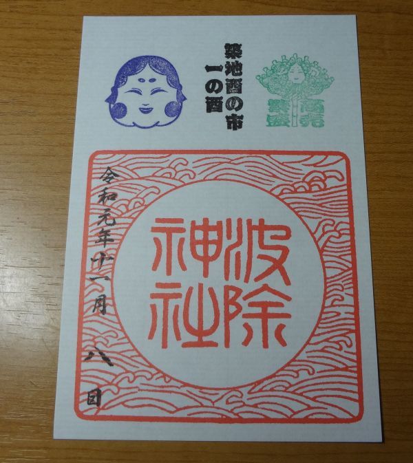 - ◆波除神社(築地)◆令和元年11月8日限定 「酉の市 一の酉」御朱印