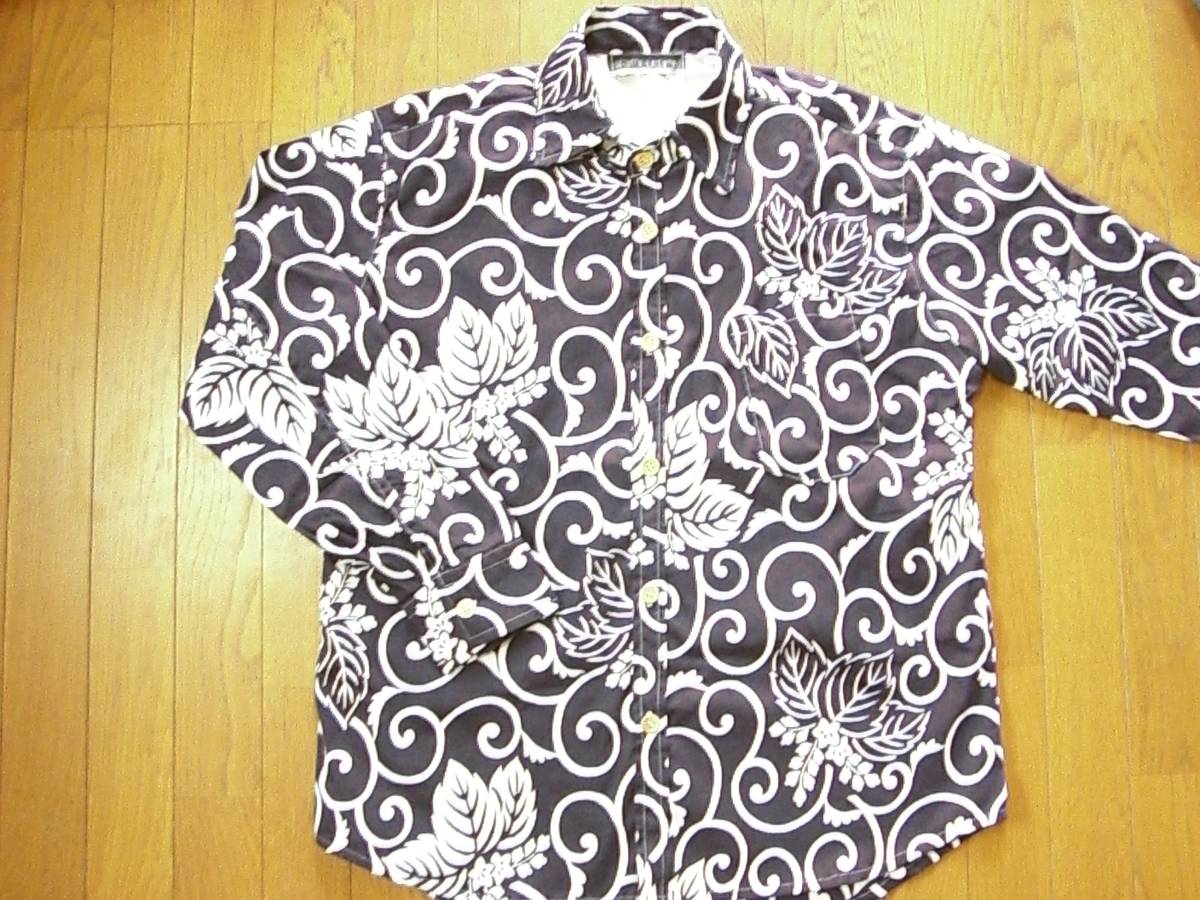 - ☆手作り☆ 唐草模様長袖シャツ 紺 XL 新品 送無料あり