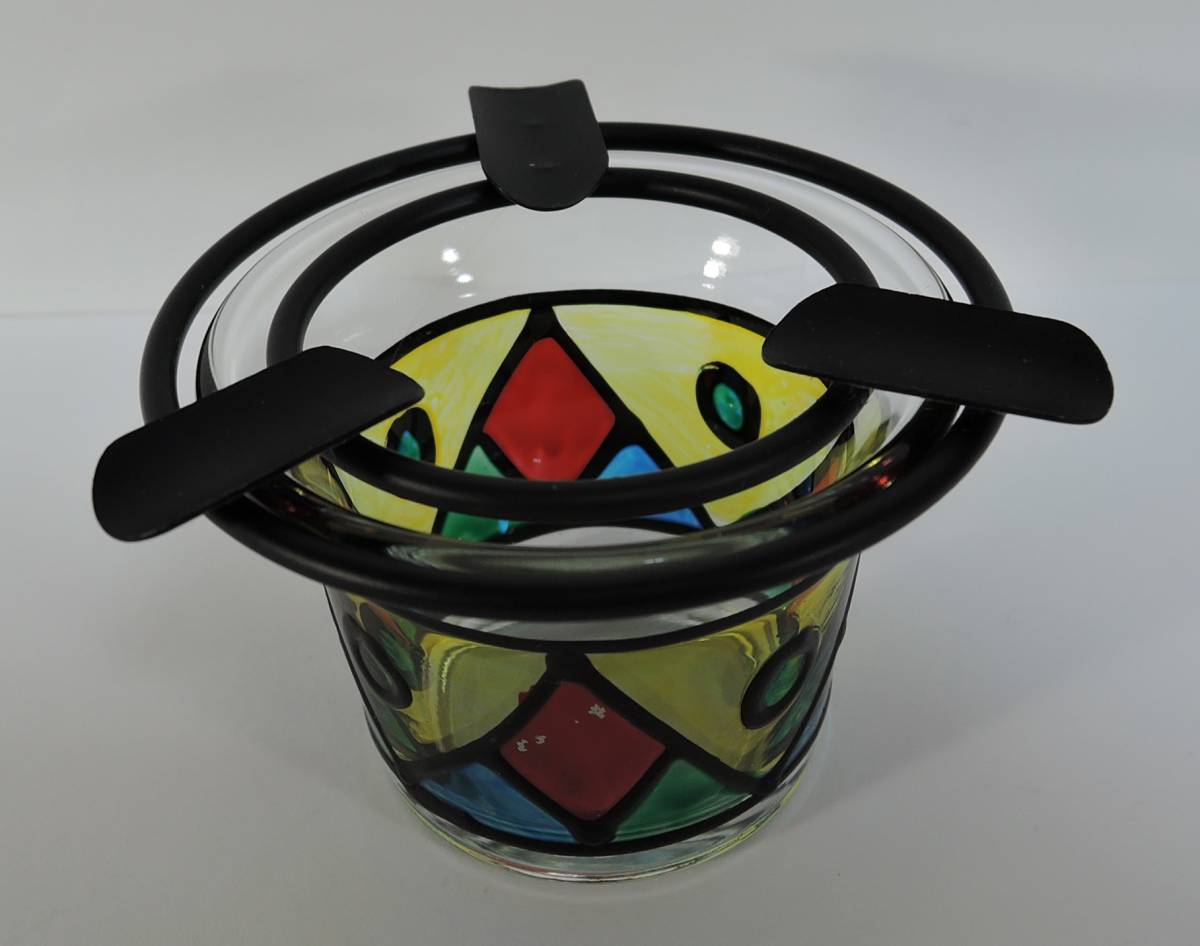 - ☆05E■ステンドグラス風 ガラス製 灰皿■未使用