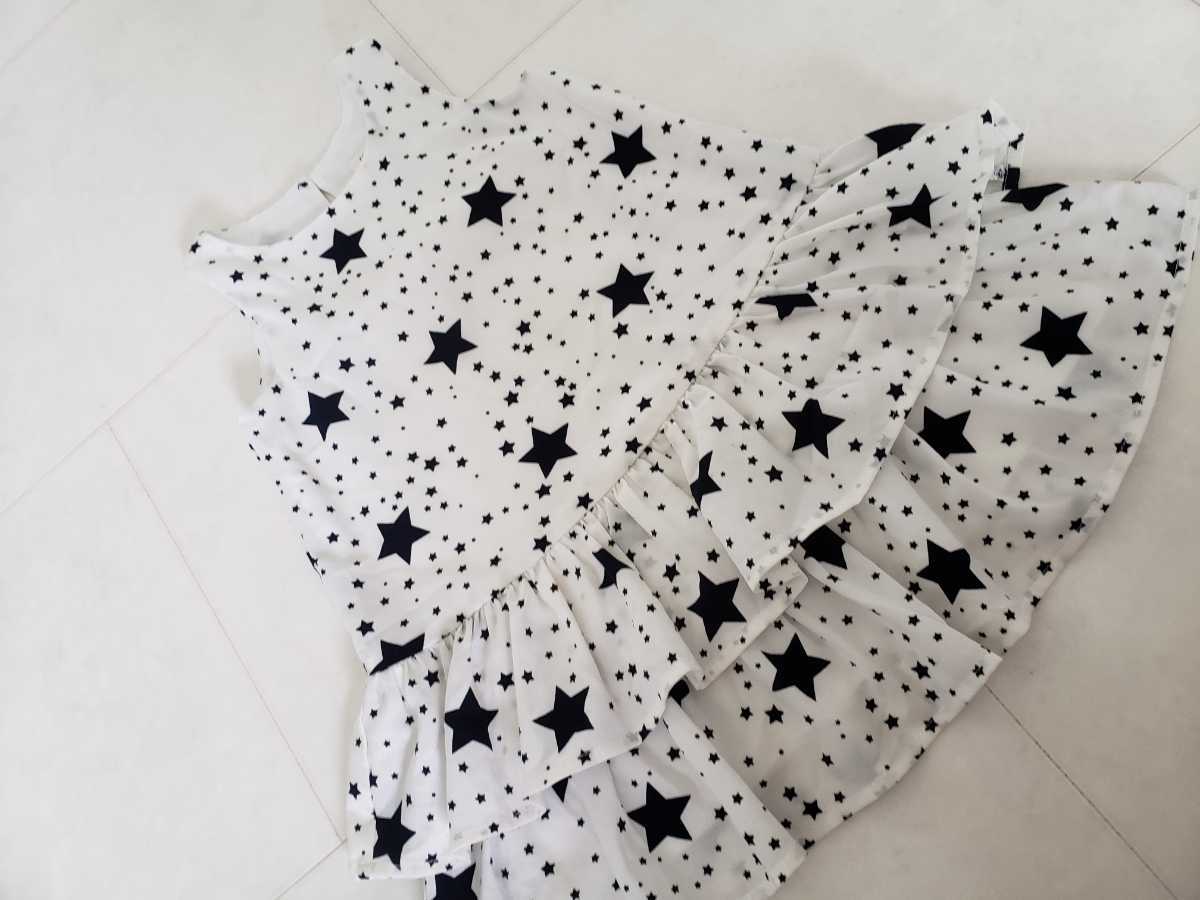 - H&M 星柄 ワンピース ノースリーブフリフリ 女の子 サイズ98 2-3Y白紺色95100