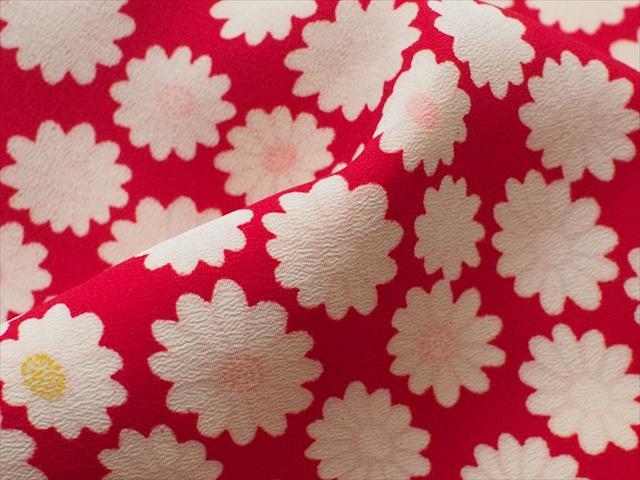 - リメイク用・レトロ着物*赤地菊文様・正絹☆縮緬リメイク素材お細工パッチワーク生地ハンドメイド
