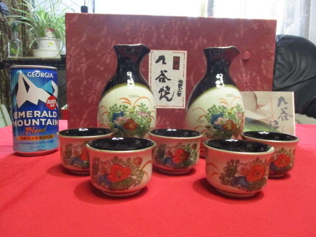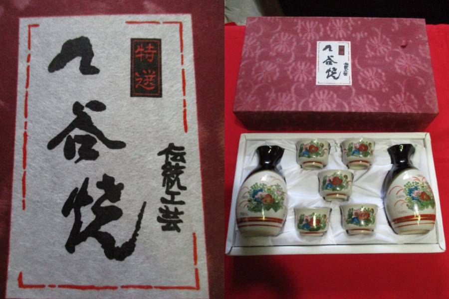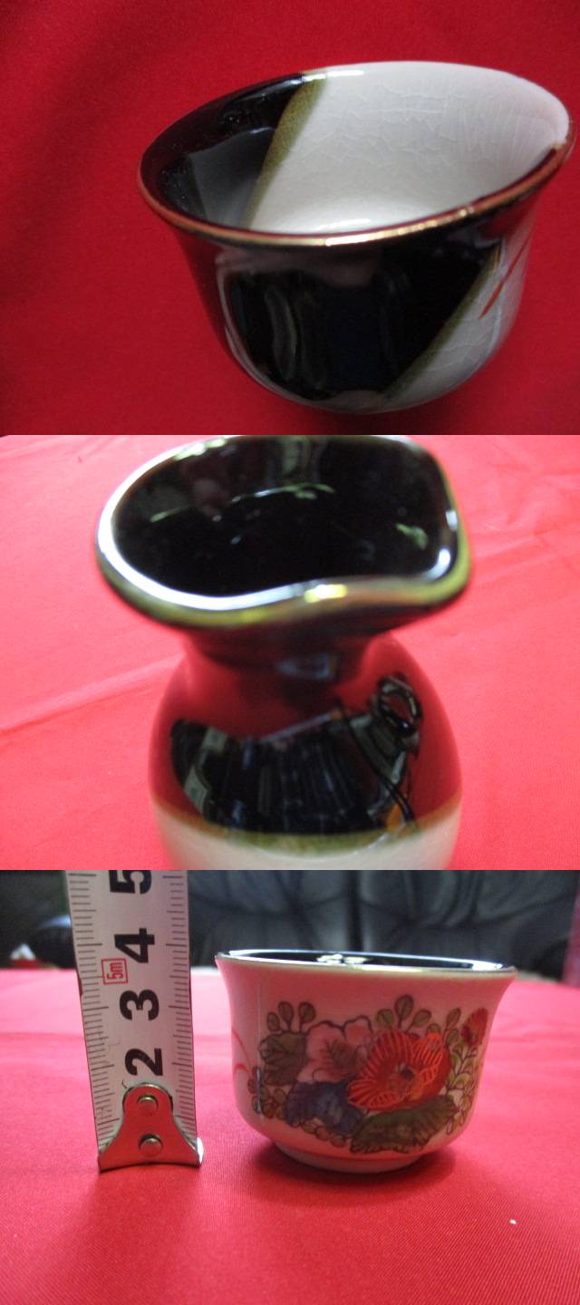 - ★特撰★九谷焼★芙蓉★金彩色絵★酒器セット★お銚子2本・お猪口5客★ぐい呑み★箱入り★金縁★陶器★伝統工芸★アンティーク★