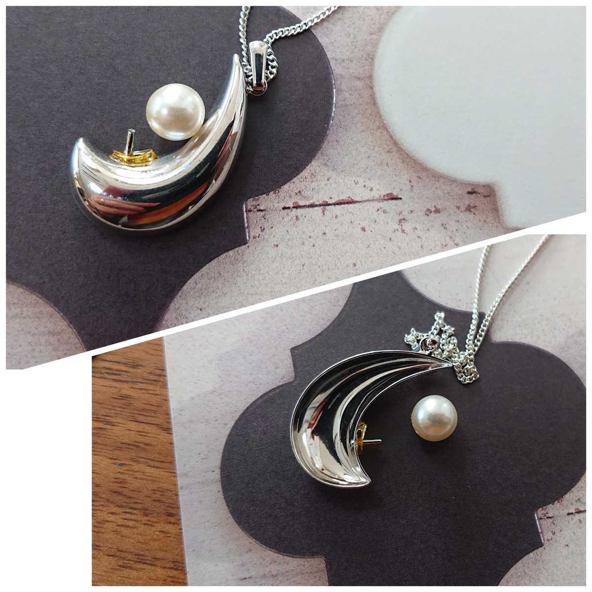- □訳あり□シルバーカラーの湾曲デザインネックレス□