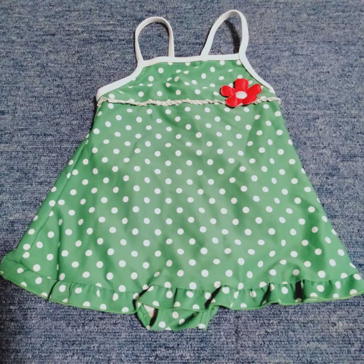 - ワンピース水着 90 西松屋 緑系ドット柄 子供 女の子 000708