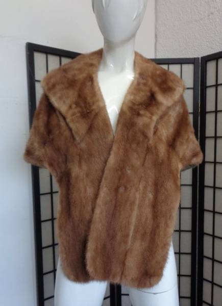 - パステル・ミンク毛皮ファー・ストール 約40x157㎝ 裏地新品
