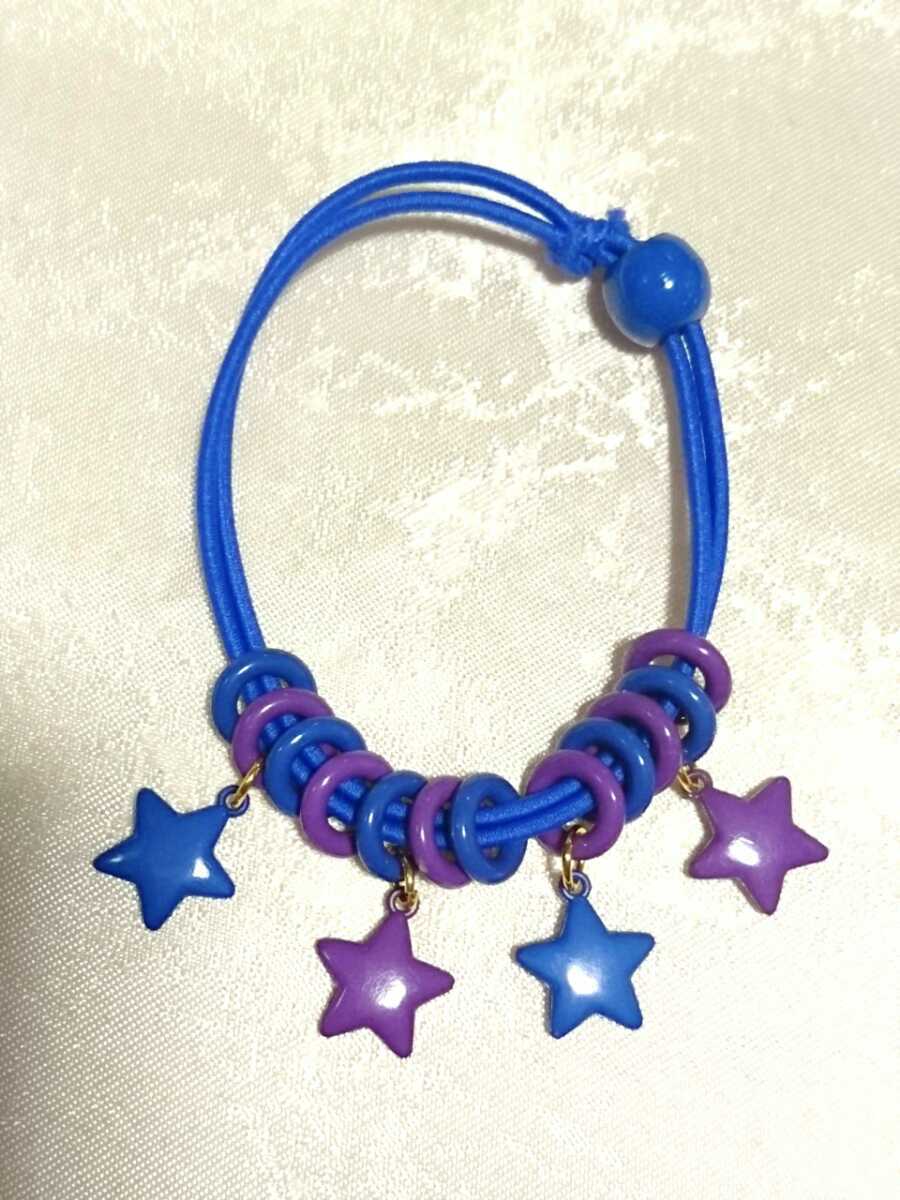 - 送料無料 新品 ファンシー 揺れる 星 スター ヘアゴム ビーズ チャーム 青 紫 ヘアアクセサリー レディース 昭和 レトロ ポップ ゆめかわ