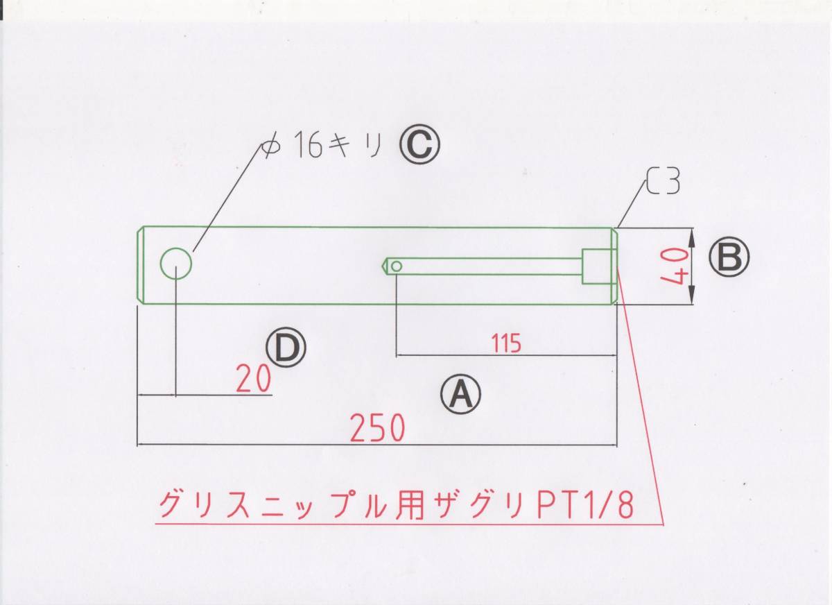 - NO 286 Φ40用 グリス穴付きバケットピン 長さ280mm /250mm 各1本セット