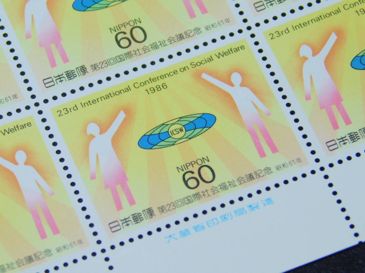- 第23回国際社会福祉会議記念 大会マークと男女 武荒信顕 1986(昭和61年)特殊切手 60円×20枚 額面 1200円 シート コレクター 未使用 997