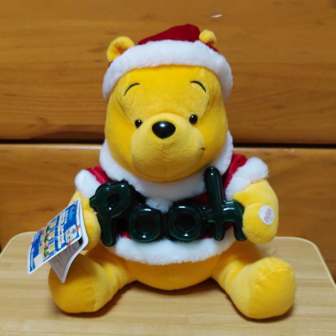 > プーさんぬいぐるみ (クリスマスソングが鳴動、胸部のPoohの部分が緑色で点滅)中古品(ビニール袋に入れ保管)