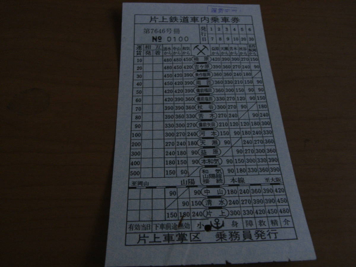 - ①片上鉄道車内乗車券 第7646-No.0100