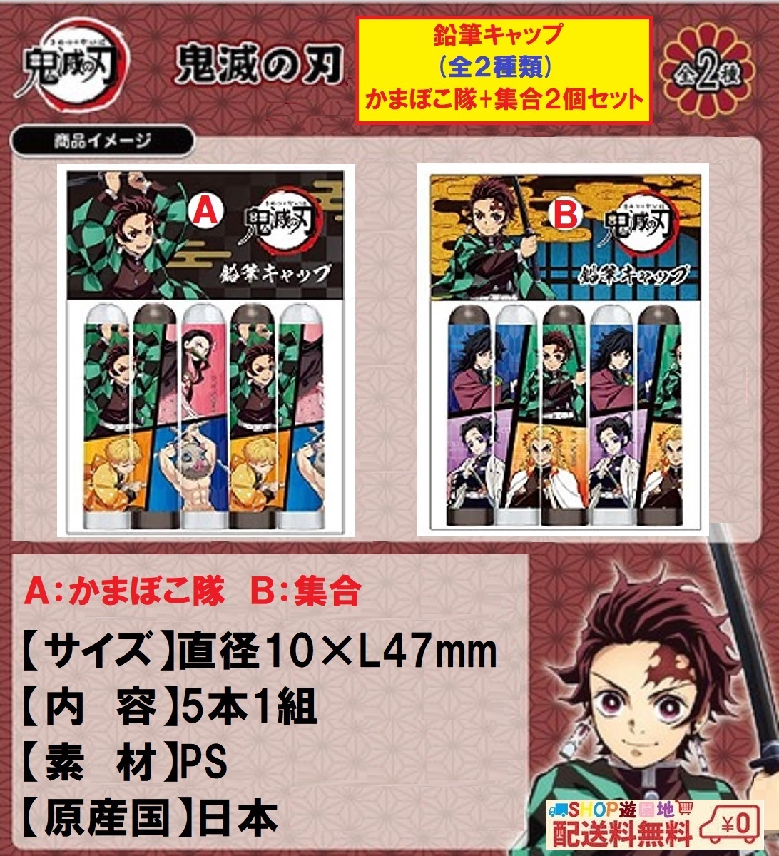 - 鬼滅の刃 鉛筆キャップ 全2種類 (A+B) 2個セット えんぴつ キャップ