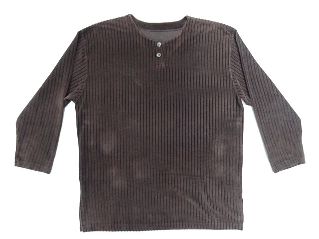 - ビンテージ 希少 太畝 コーデュロイ ヘンリーネック カットソー 長袖T ロンT ブラウン 茶 プルオーバー ボタン 光沢 レア スリット 裾 色