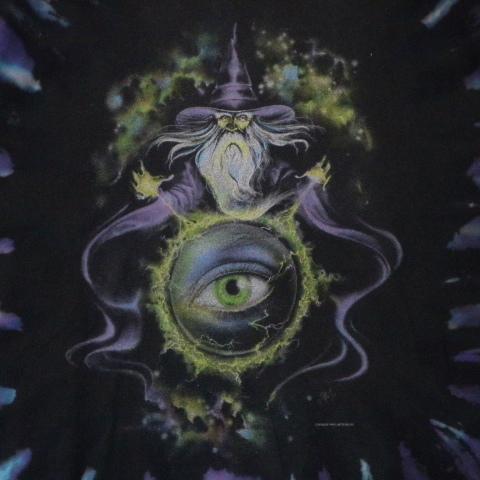 > 90s EYE DYE 魔女 ドラゴン 目 タイダイ Tシャツ 総柄 両面プリント イラスト アート グラフィック 龍 デビル アイボール USA ヴィンテージ