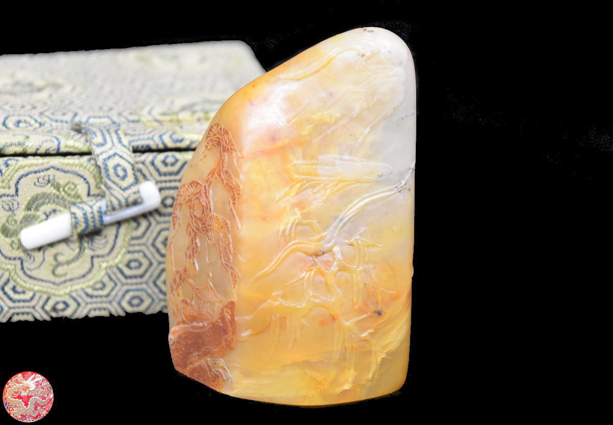 > 【送料無料】天然 寿山石 Shoushan stone 高山石 高山凍 手彫り 印材 未使用 旧蔵 福建省原石 置物 稀少 唐物古玩 印鑑 篆刻 WWFT032