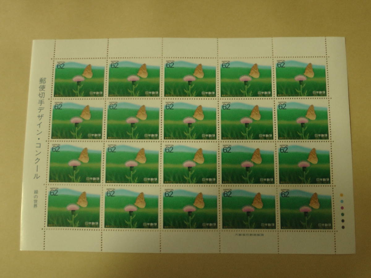- 未使用切手 郵便切手デザイン・コンクール 緑の世界 62円切手 1シート