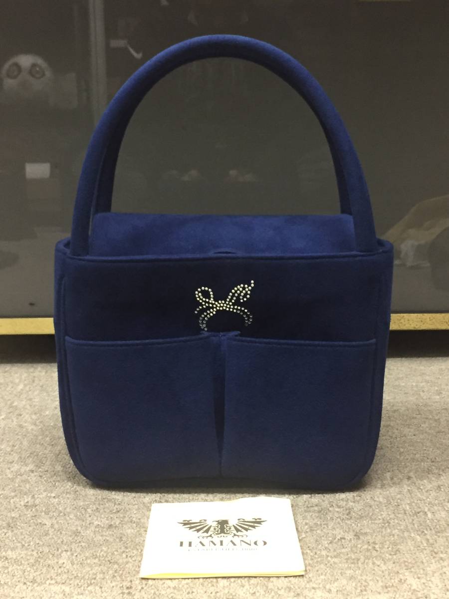 - 新品未使用!格安!HAMANO 濱野 ハマノ リボン ラインストーン ベロア ベルベット ハンドバッグ