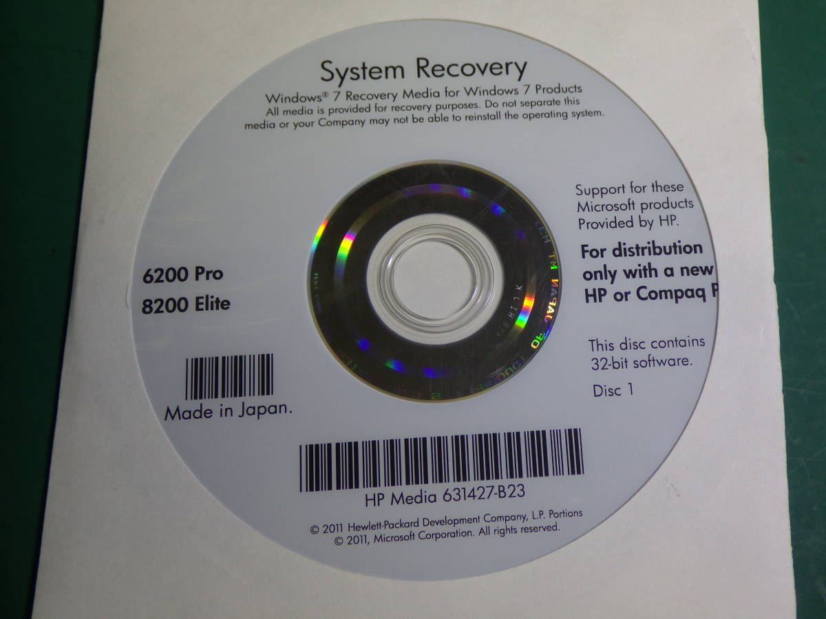 - HP デスクトップ 6200Pro 8200Elite Windows7 Pro 32bit リカバリDVD