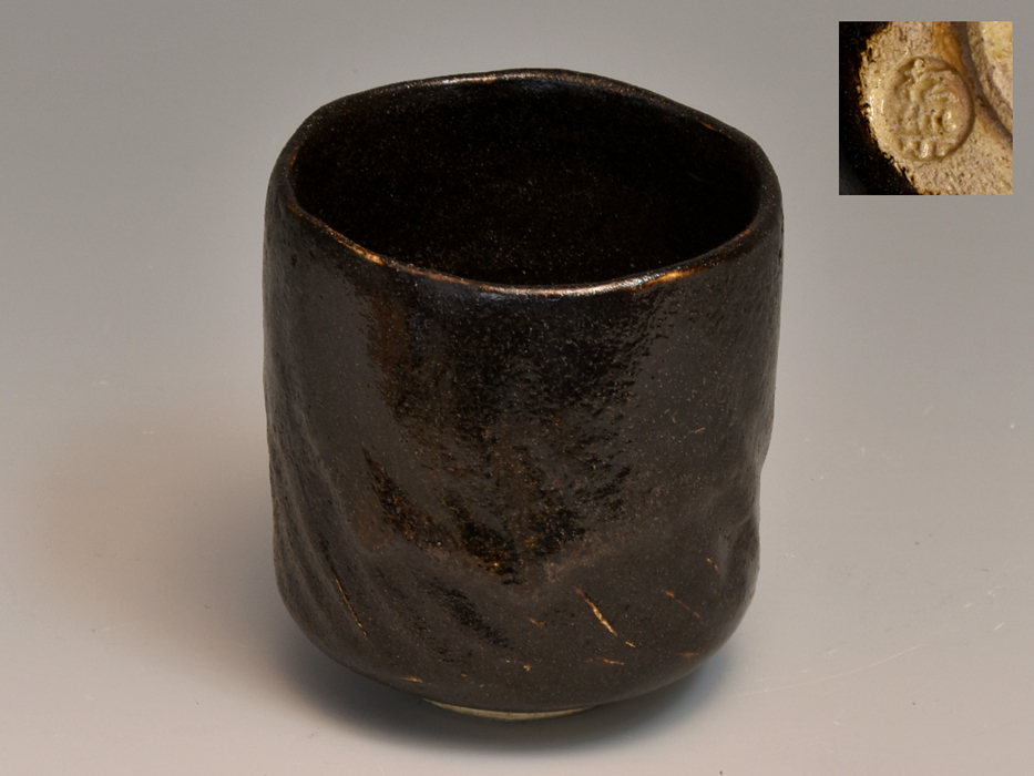 - 京都名工 佐々木松楽(造)黒楽茶碗 松楽窯 京焼 楽焼 茶道具 現代工芸 美品 b9450e