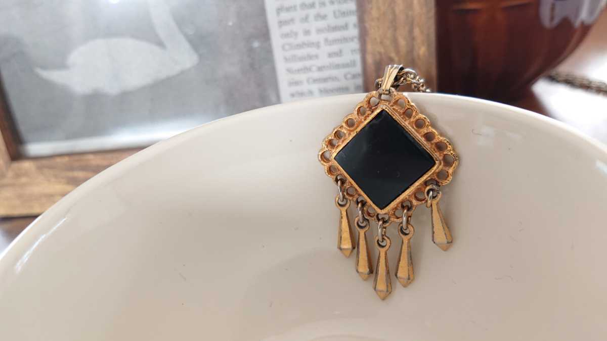 - □オリエンタルな印象□訳あり□黒×ゴ―ルドカラ―□揺れるチャームのペンダント□