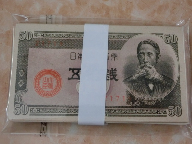 - 板橋(13)★ 政府紙幣B号50銭 板垣50銭 未使用 100枚 ★ No.80